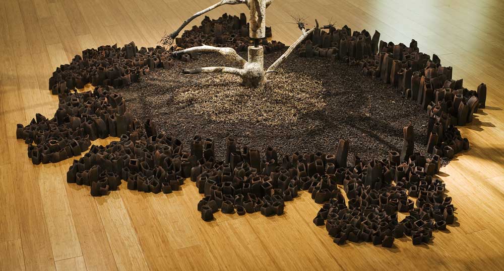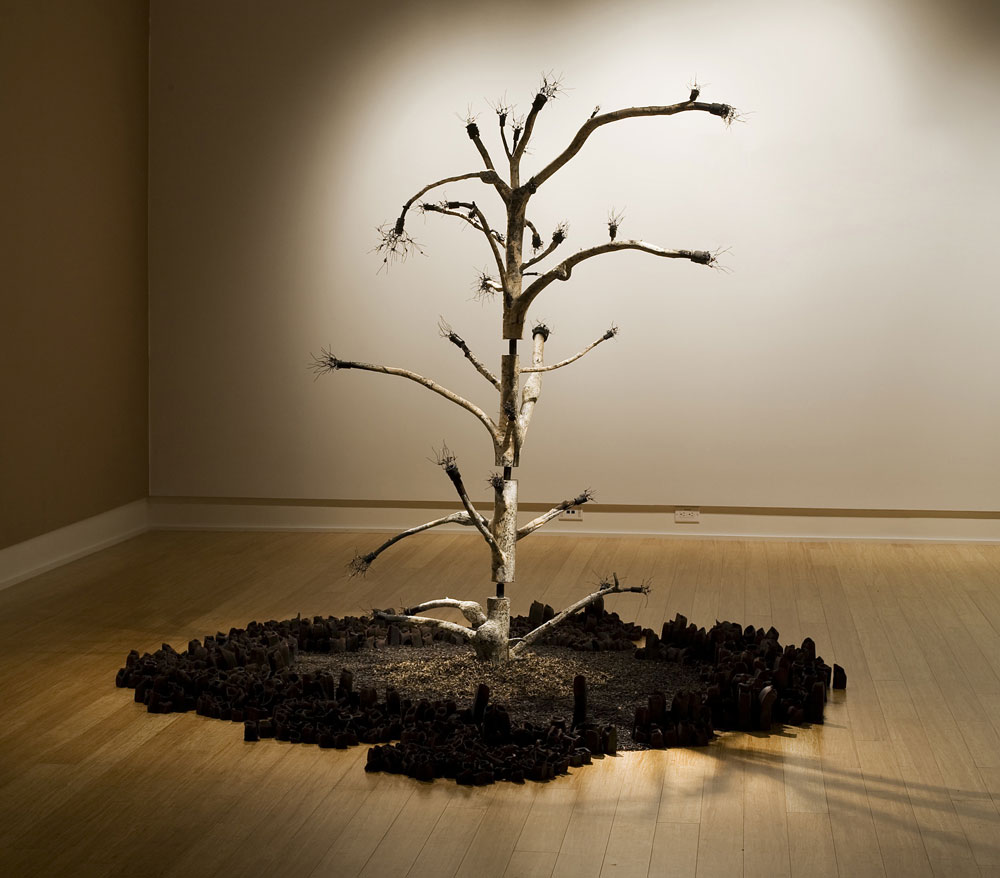 Mixed media installation: ceramic, metal, wood, papier mache, wire, rubber, dried seaweed and dried fungus | ||||||
