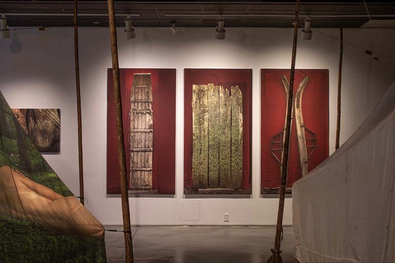 Liz Ingram and Bernd Hildebrandt Toboggan, 2024 Door, 2024 Sleigh runners, 2024 Inkjet prints, 195 x 105 cm each